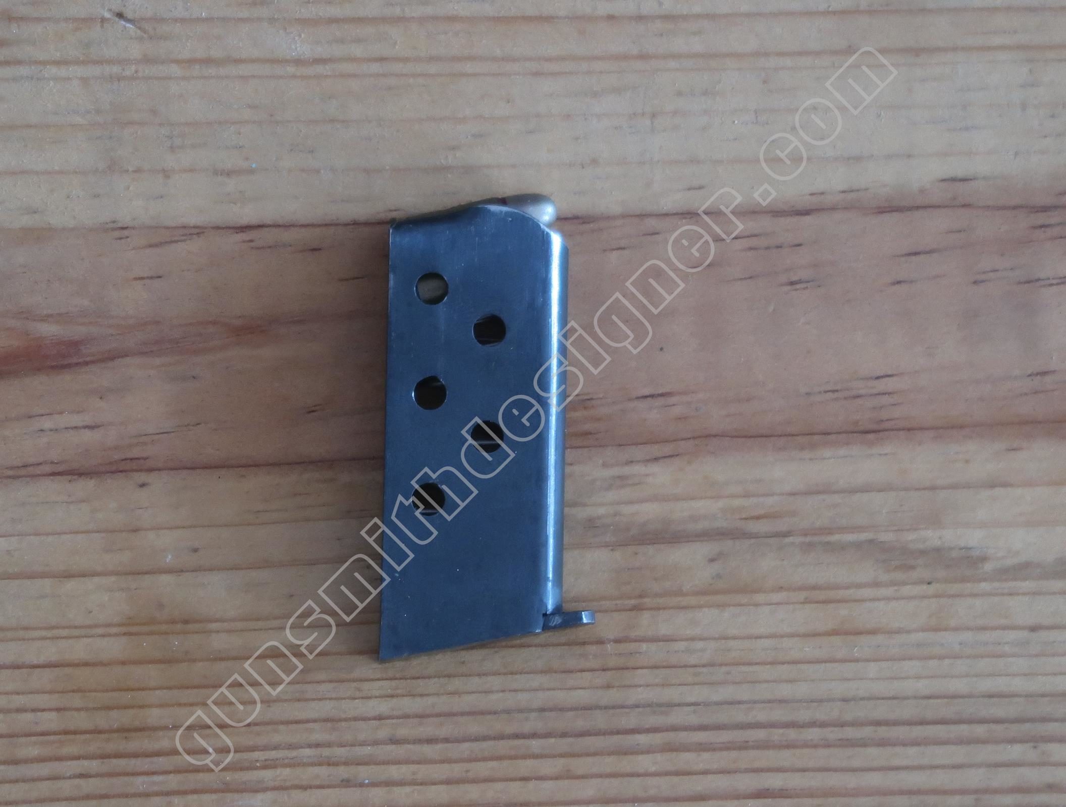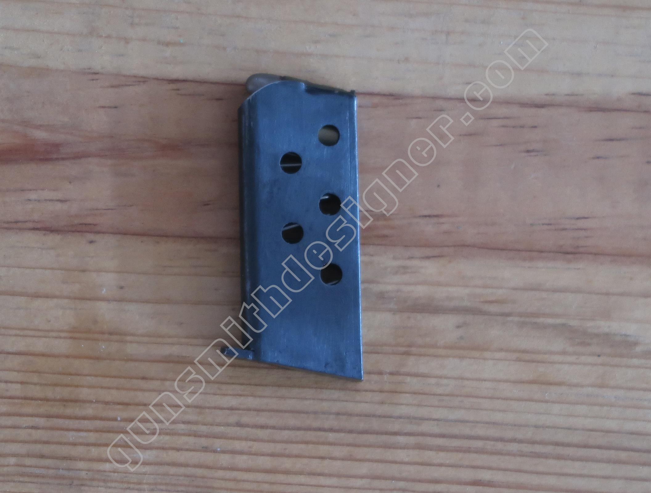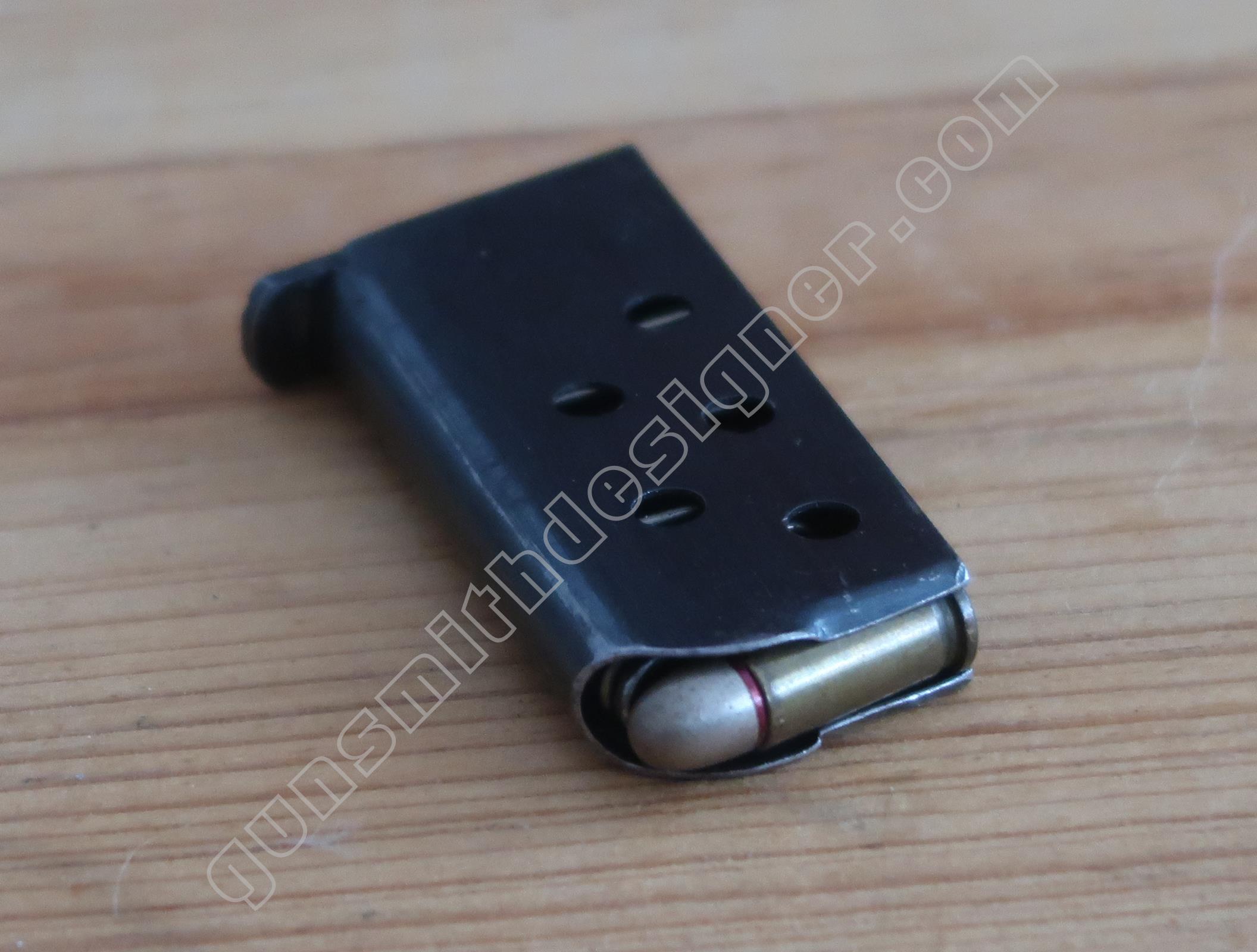 Le corps de chargeur a une section de : 24,82 mm x 8,9 mm. Il est obtenu dans une tôle de 0,4 mm d’épaisseur. Le fond du chargeur est lié au corps de chargeur, il n’est pas démontable. La contenance est de : 6 cartouches.
