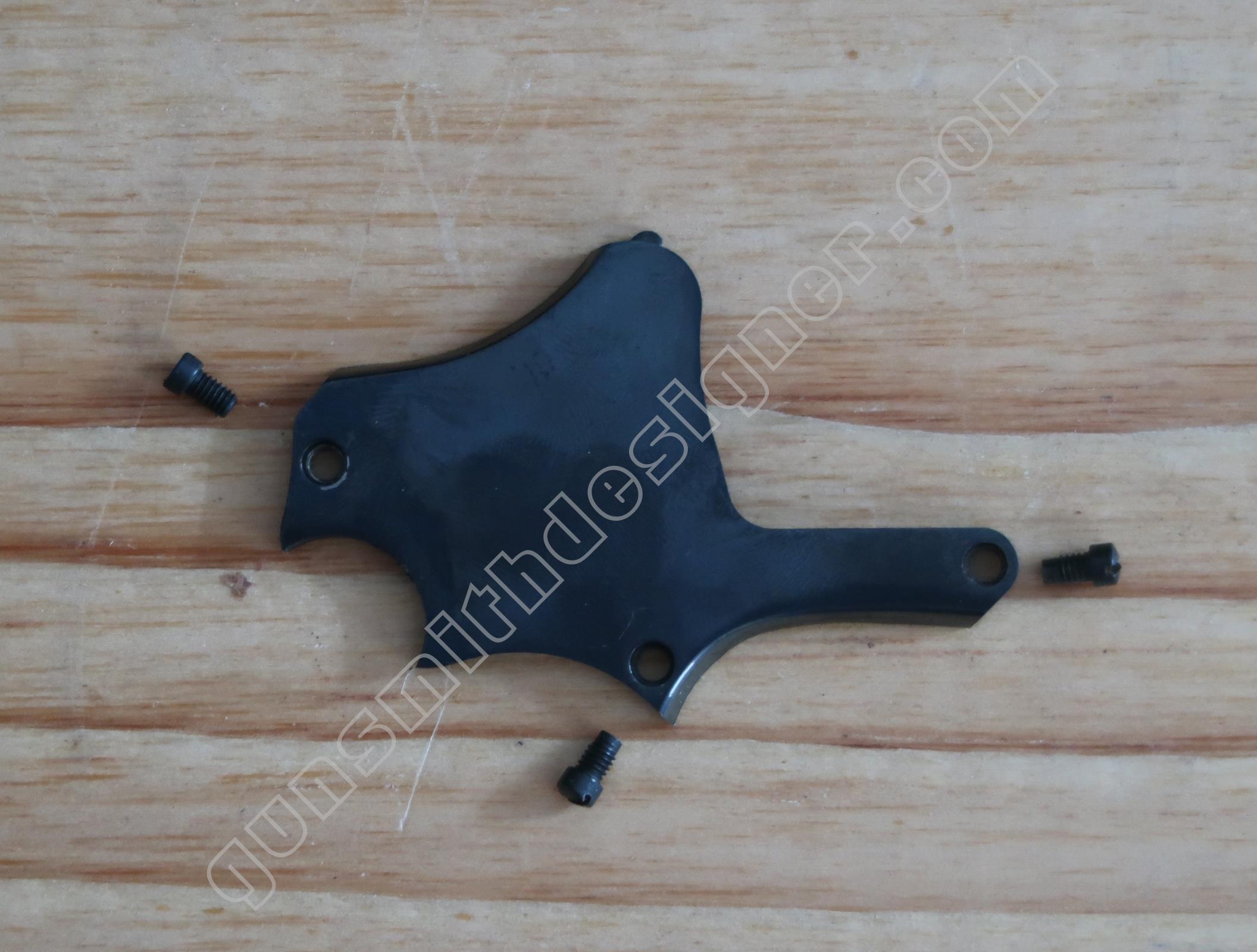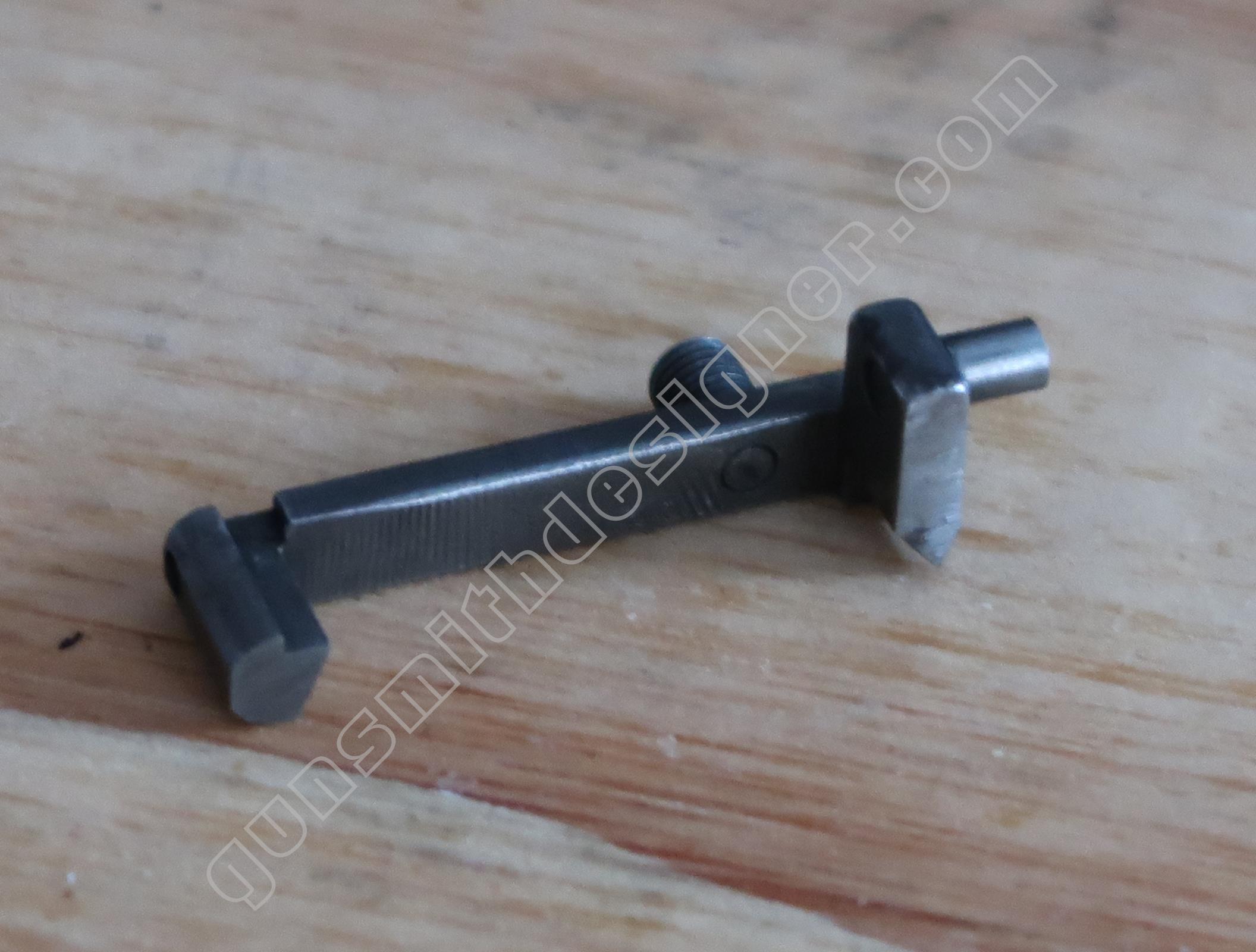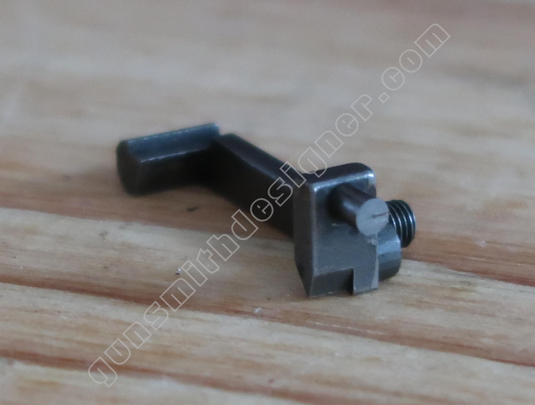 Cette pièce comporte 3 pions. L’un est son axe, le second est l’appui du ressort, le troisième vient au contact du dispositif d’ouverture du barillet.