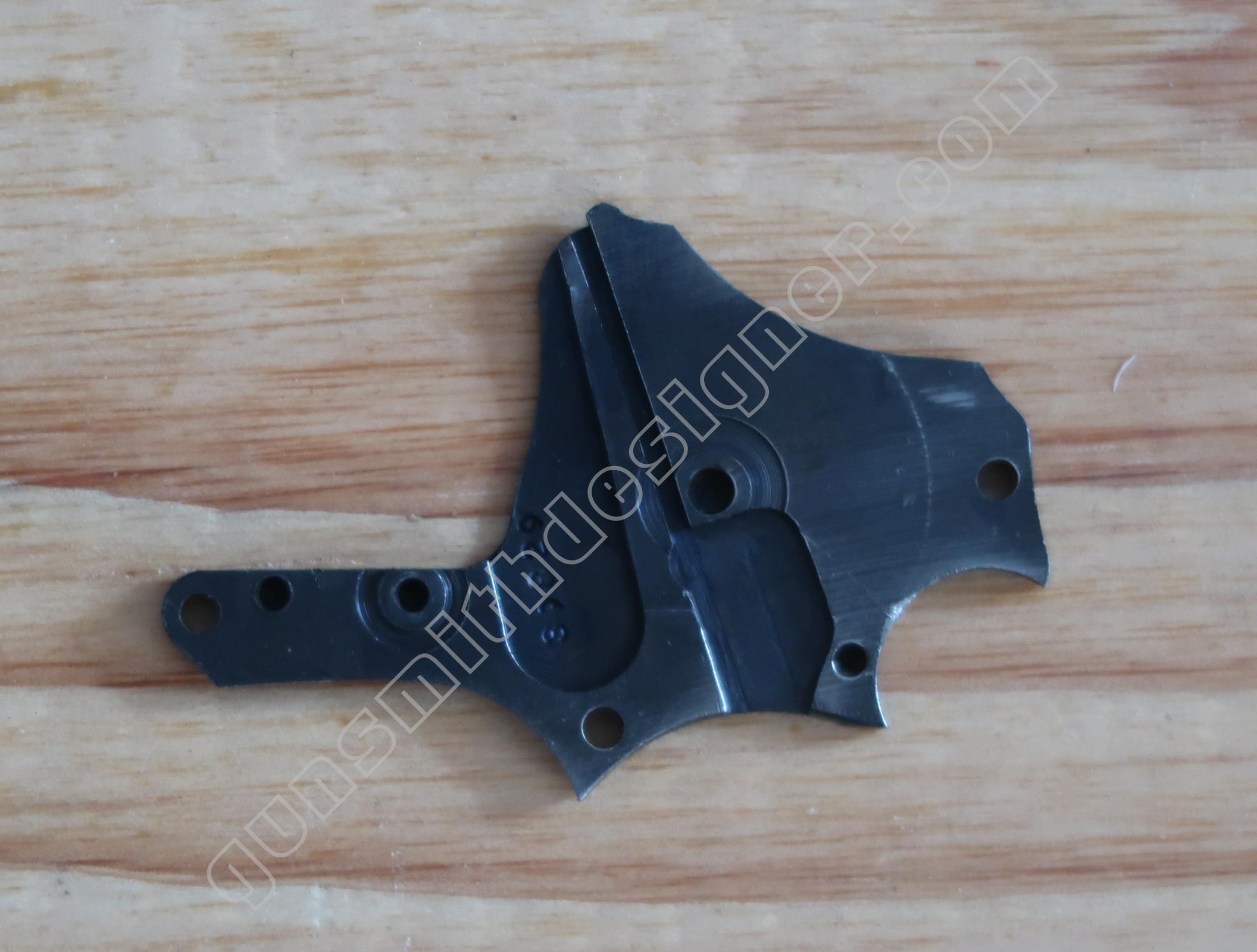 L’épaisseur de la poignée est : 8,7 mm. Le logement de la butée du ressort de marteau est usinée sur la carcasse.
