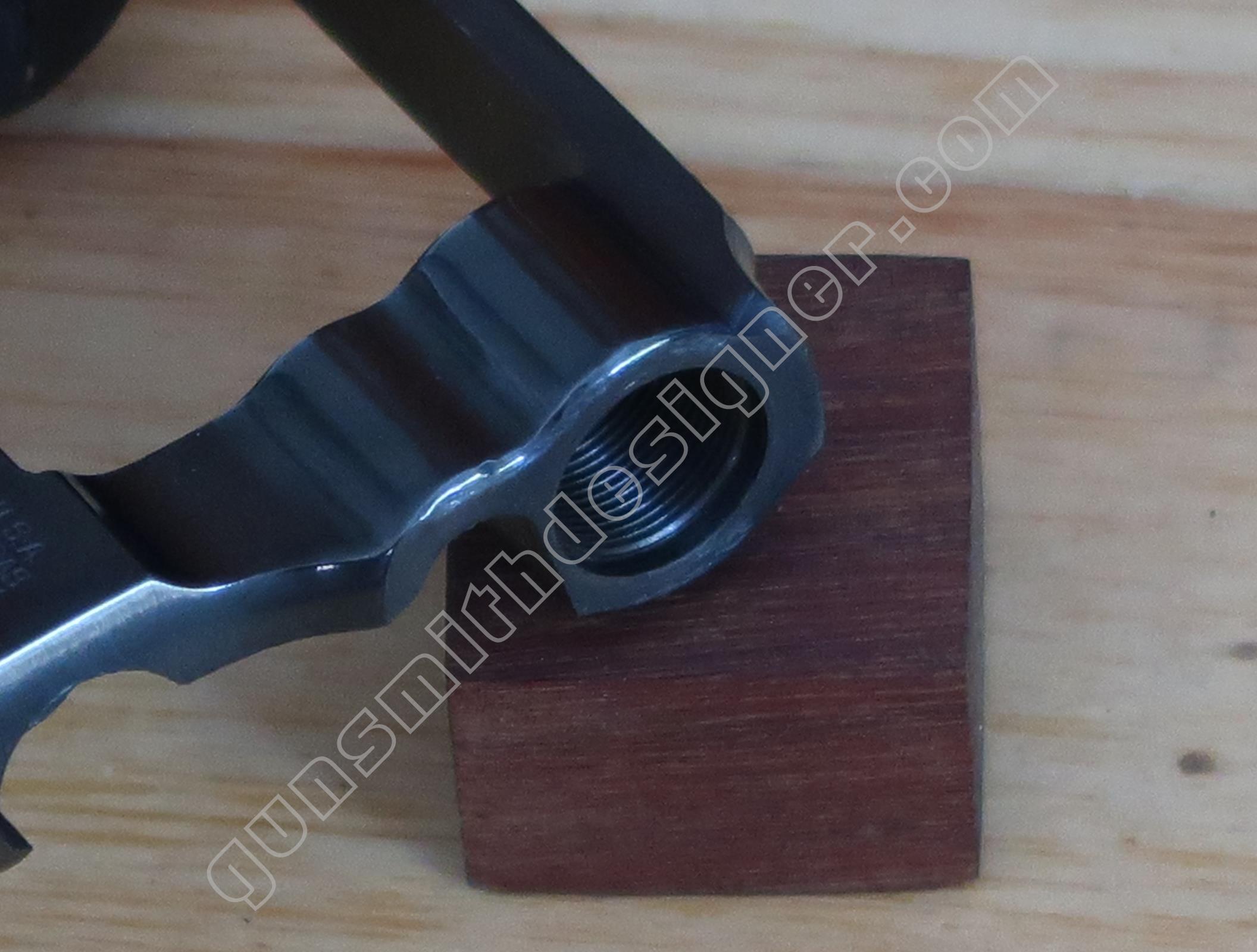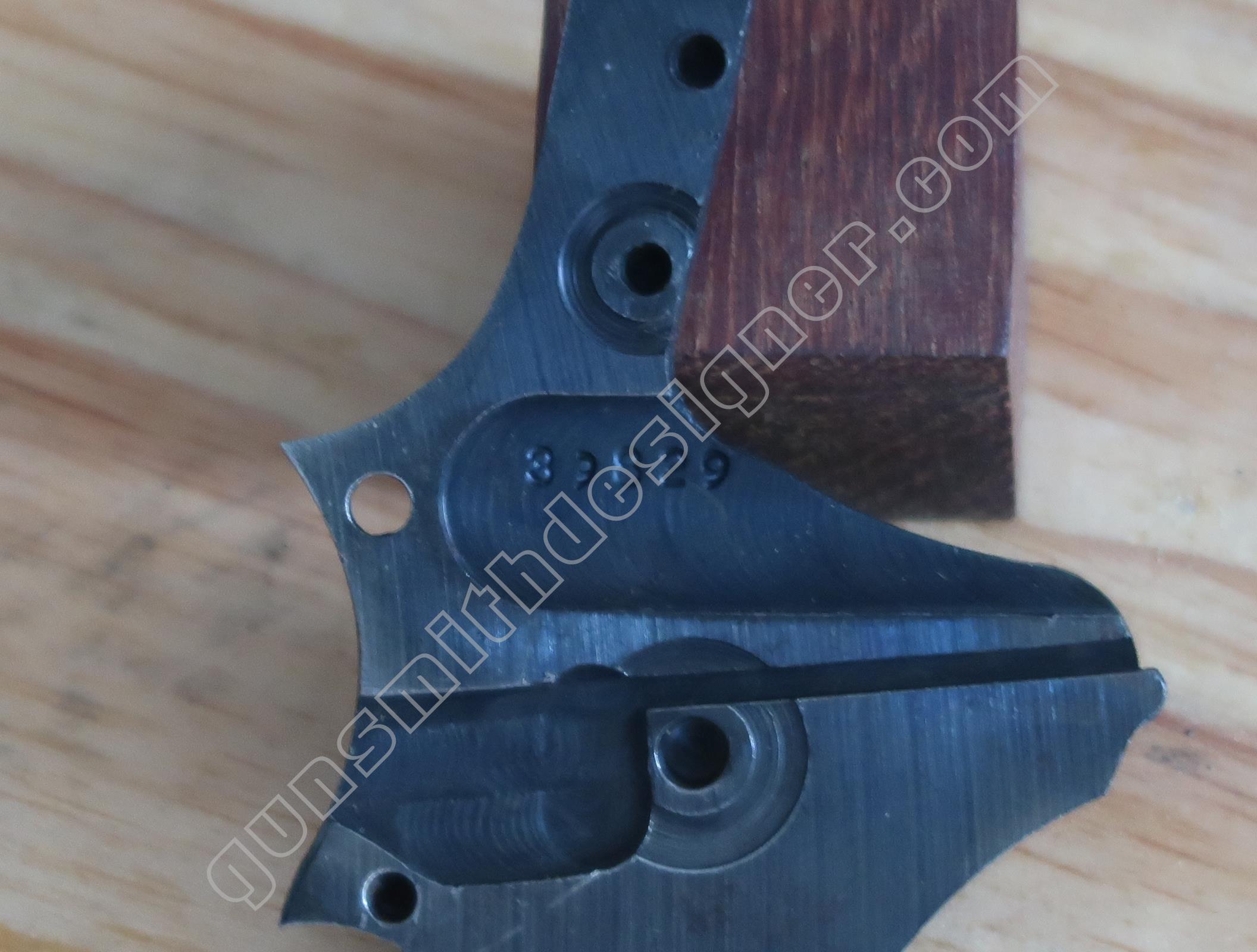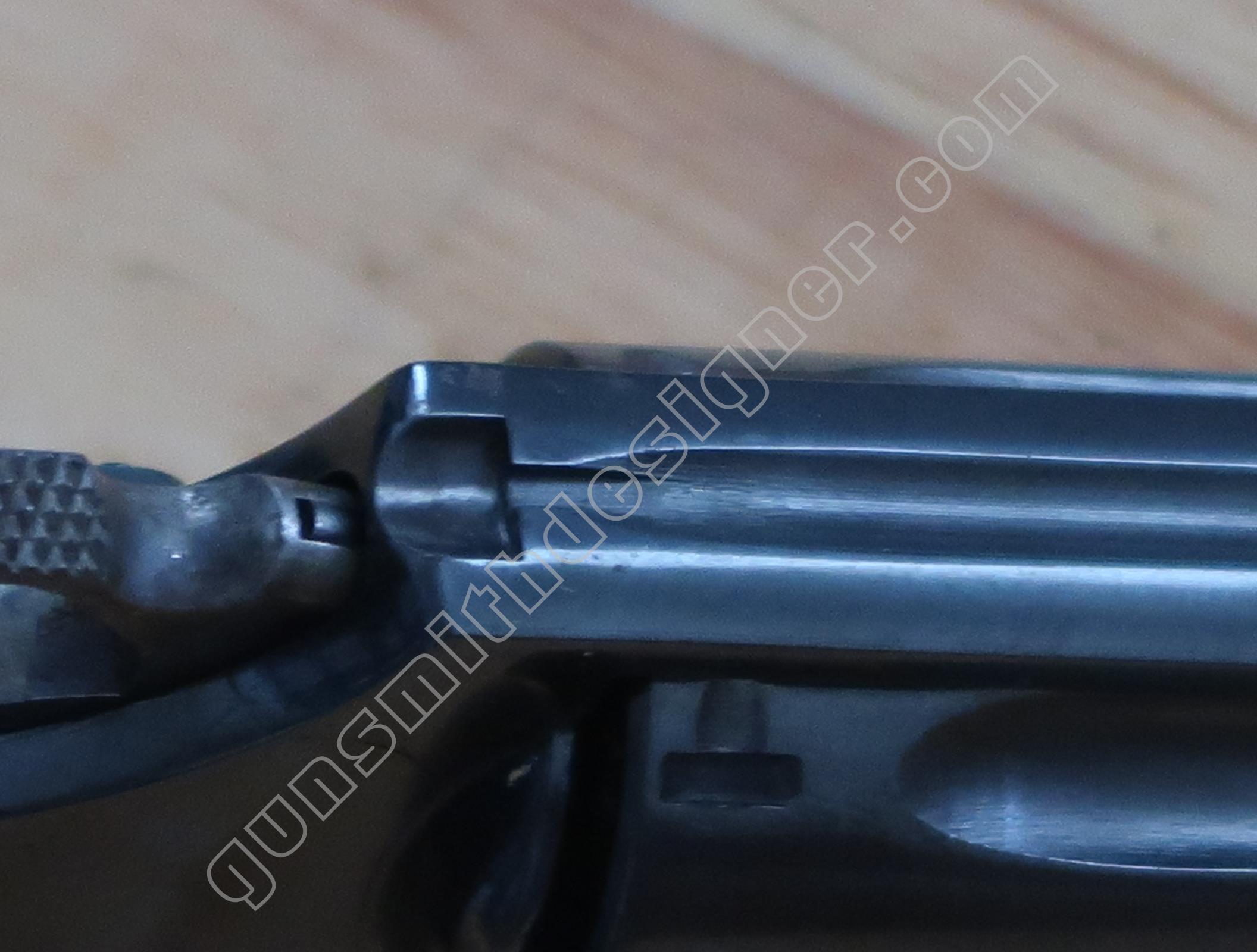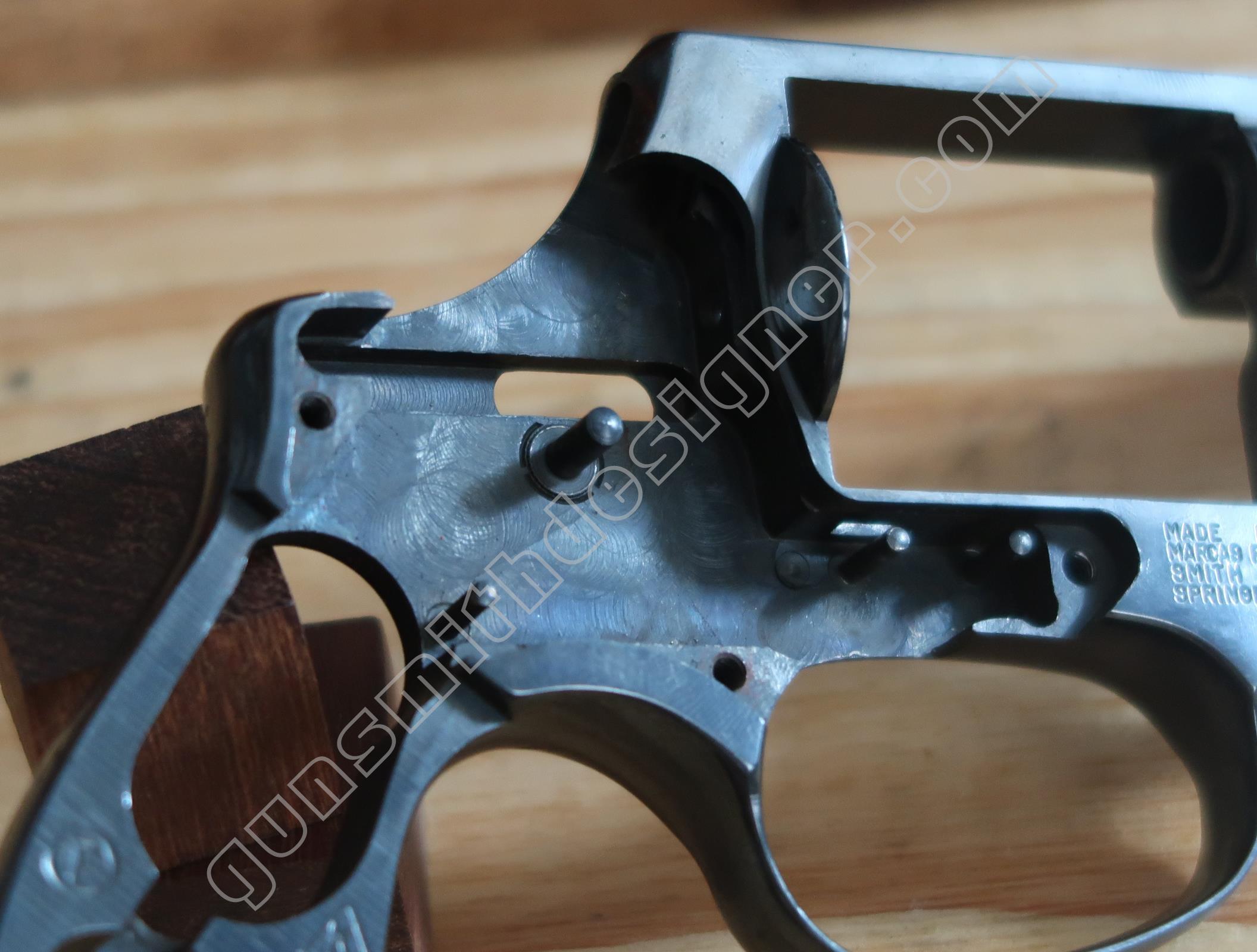 Sur la face interne, une rainure existe pour la sécurité du percuteur, une seconde pour l’élévateur de barillet.