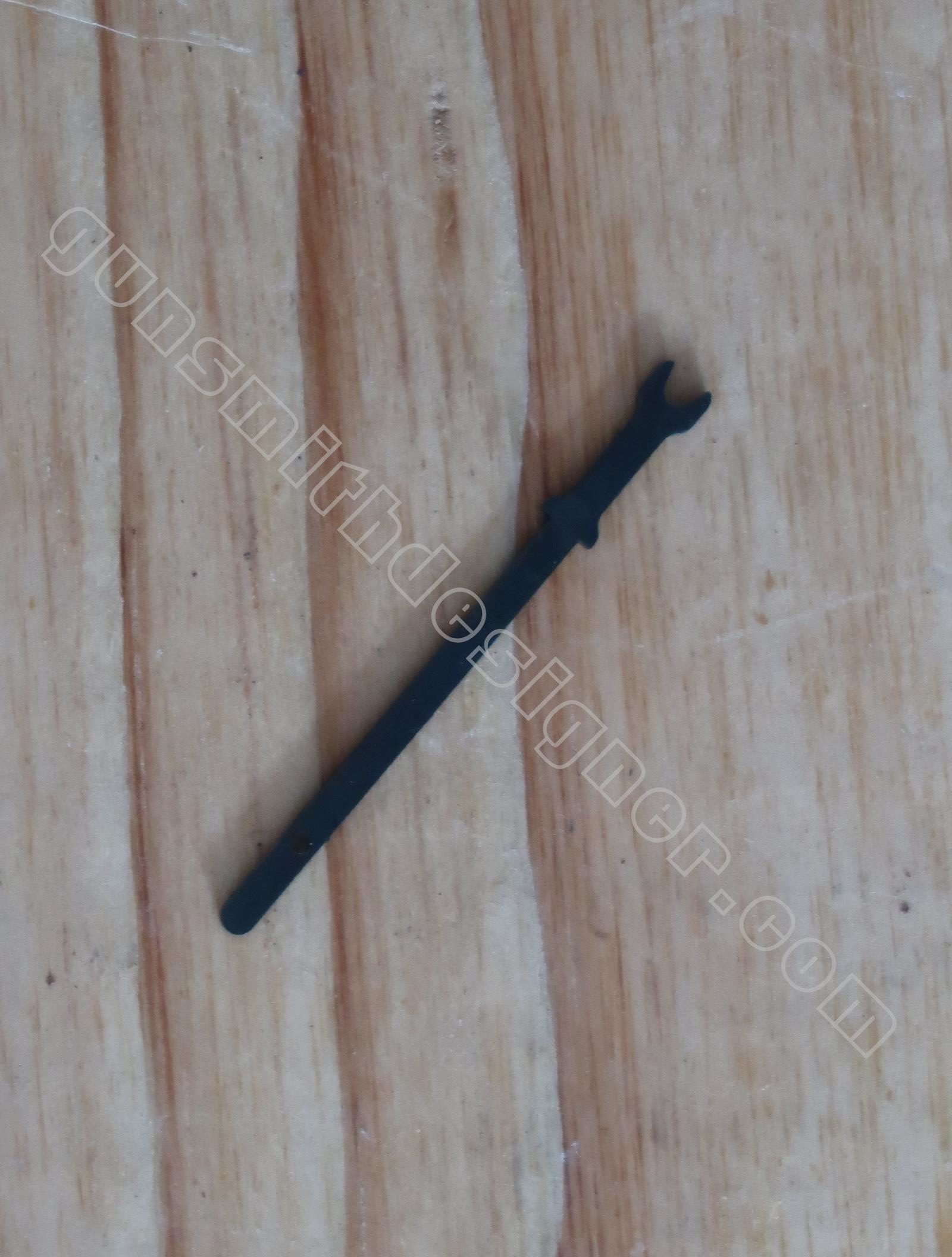 La tige guide du ressort de chien est en acier. Elle est obtenue dans une tôle de 1,9 mm. La longueur de la pièce est : 56,9 mm.
