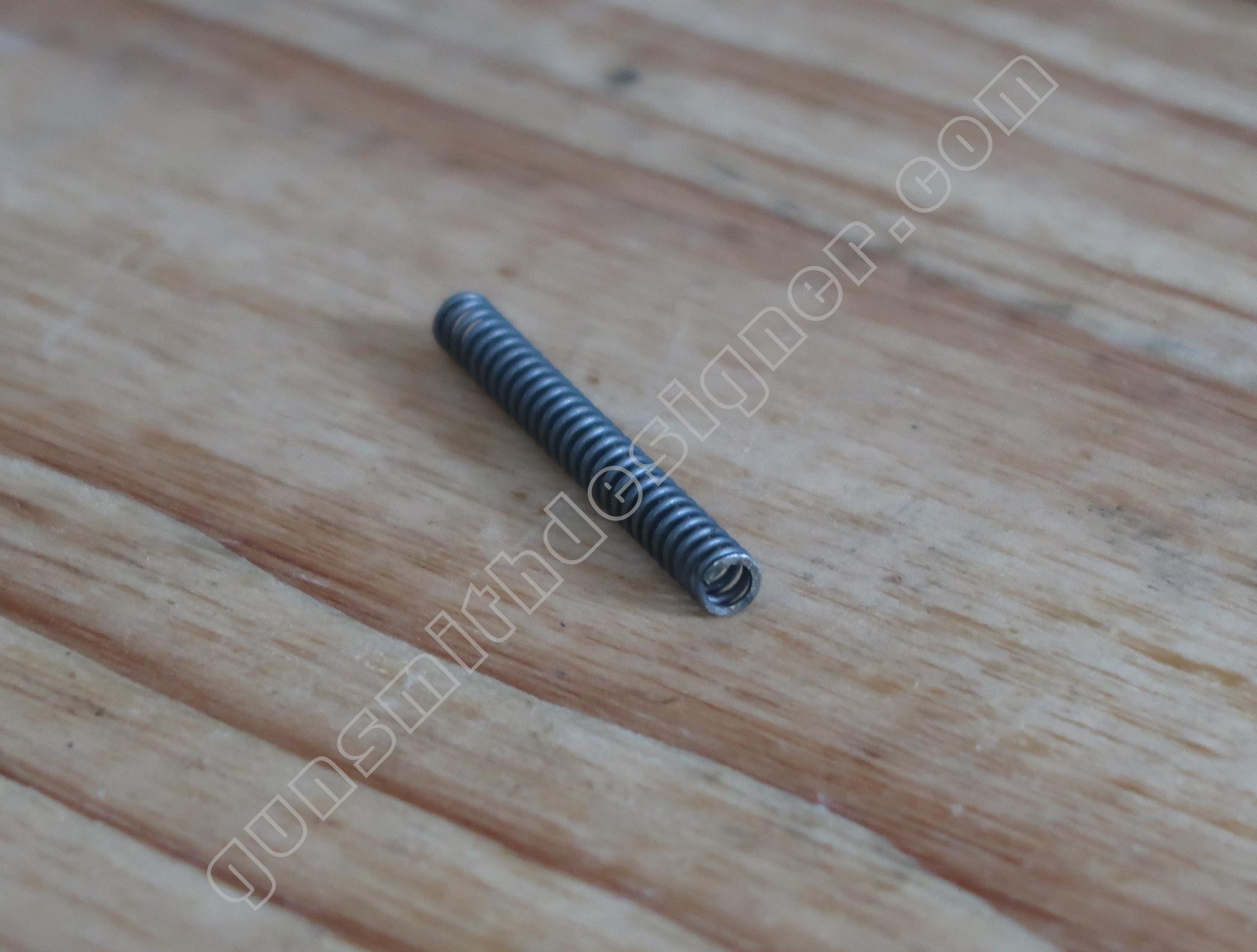 Le ressort de verrou de barillet est hélicoïdal. Sa longueur déployée est : 7,5 mm. Le diamètre externe est : 2,9 mm. Le diamètre du fil est : 0,4 mm.